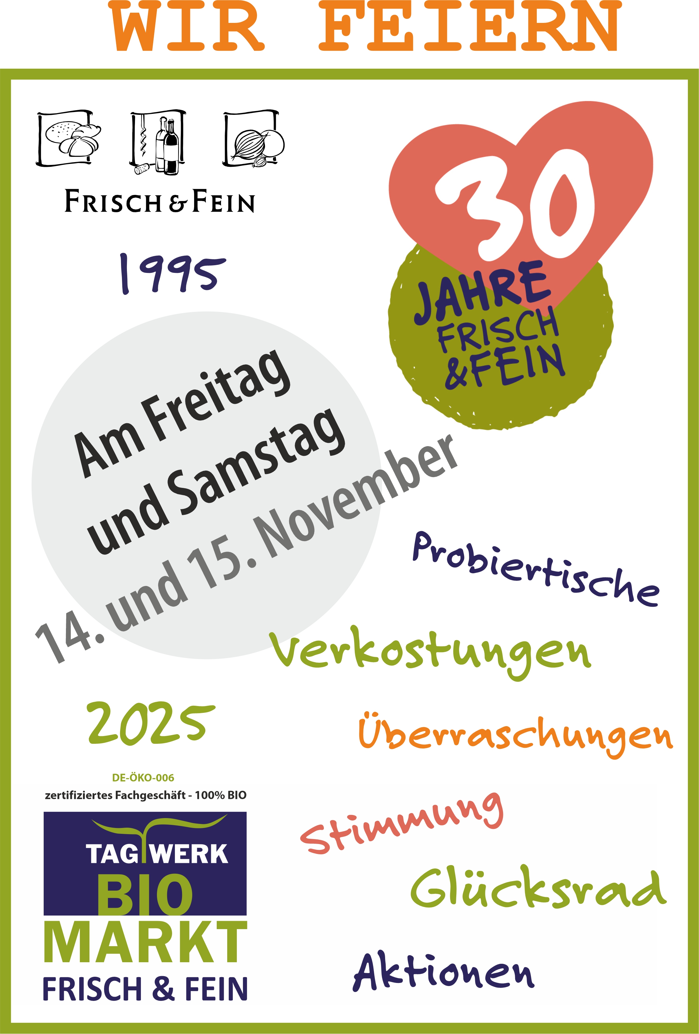 Ein Grund zu feiern ist ja immer schnell gefunden. Aber der 30. Geburtstag ist schon eine richtige Nummer. Wir bedanken uns für Ihre und Eure TREUE! Denn ohne die vielen guten Stammkunden und -kundinnen wären wir nicht so weit gekommen. Deshalb wollen wir zwei Tage lang mit vielen Verkostungsständen, Angeboten, einem Glücksrad mit vielen Gewinnen und natürlich mit viel Spaß, Freude und mit viel Zeit für Euch zusammen feiern.